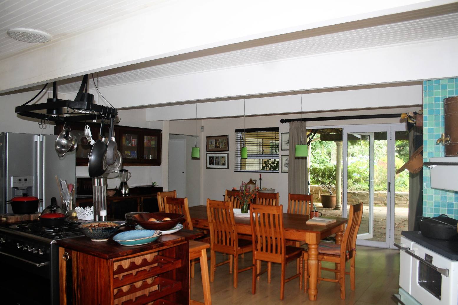 Eight-seater Oregon Pine dining table and chairs, leads onto covered patio